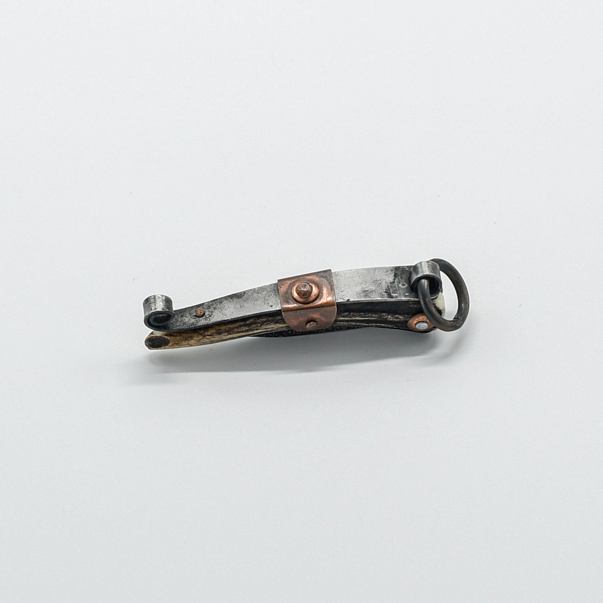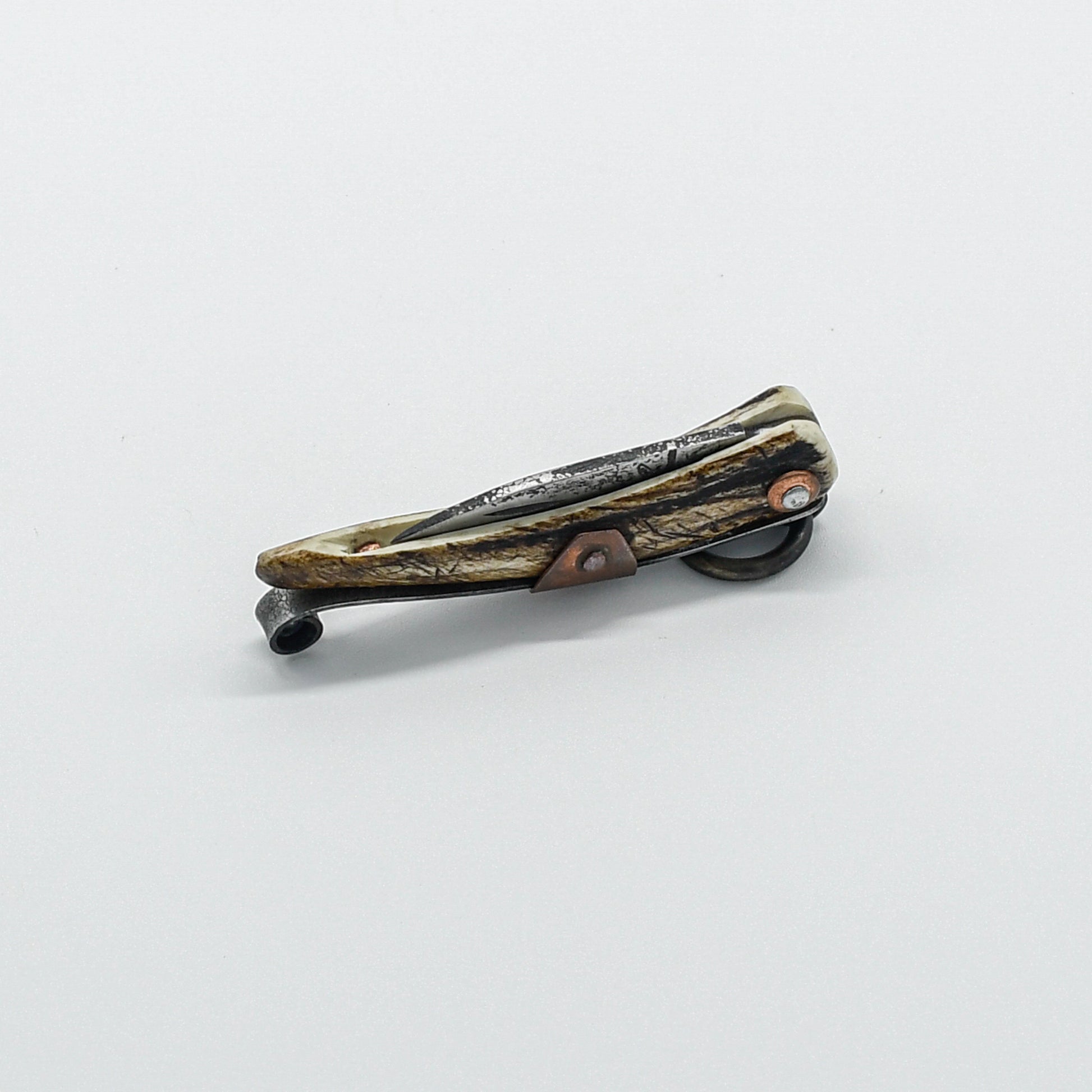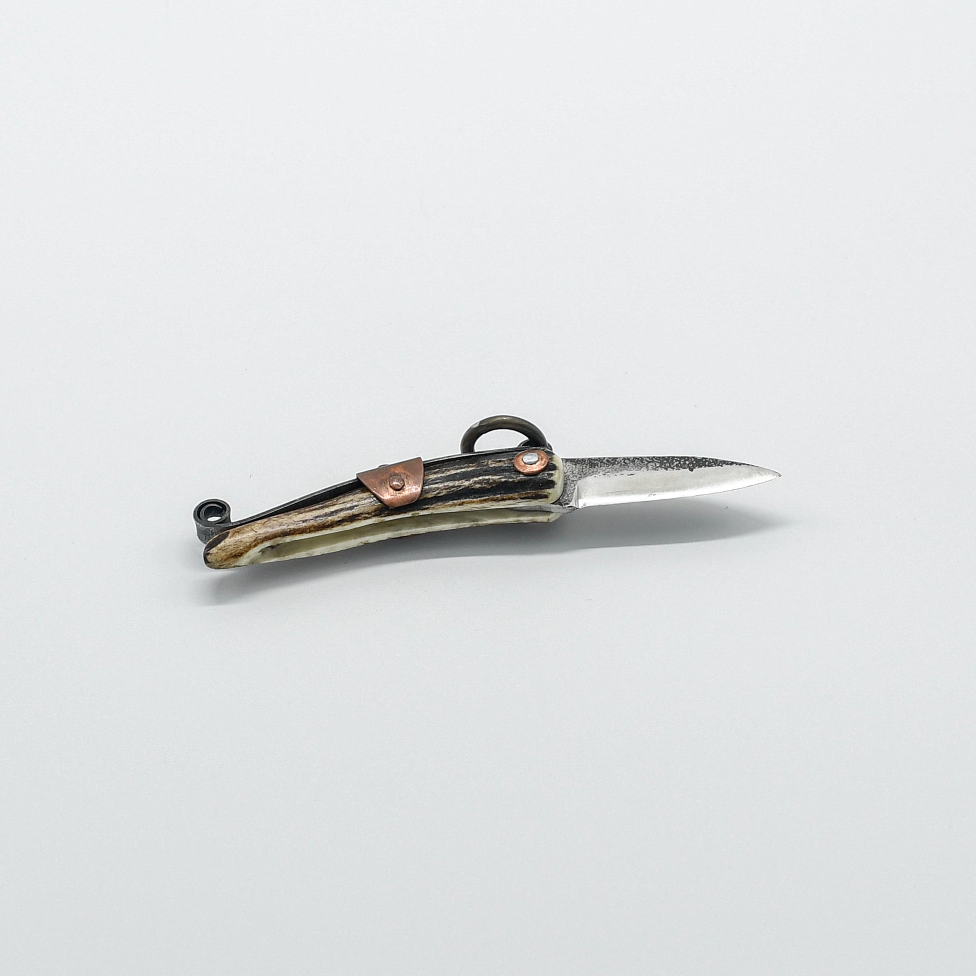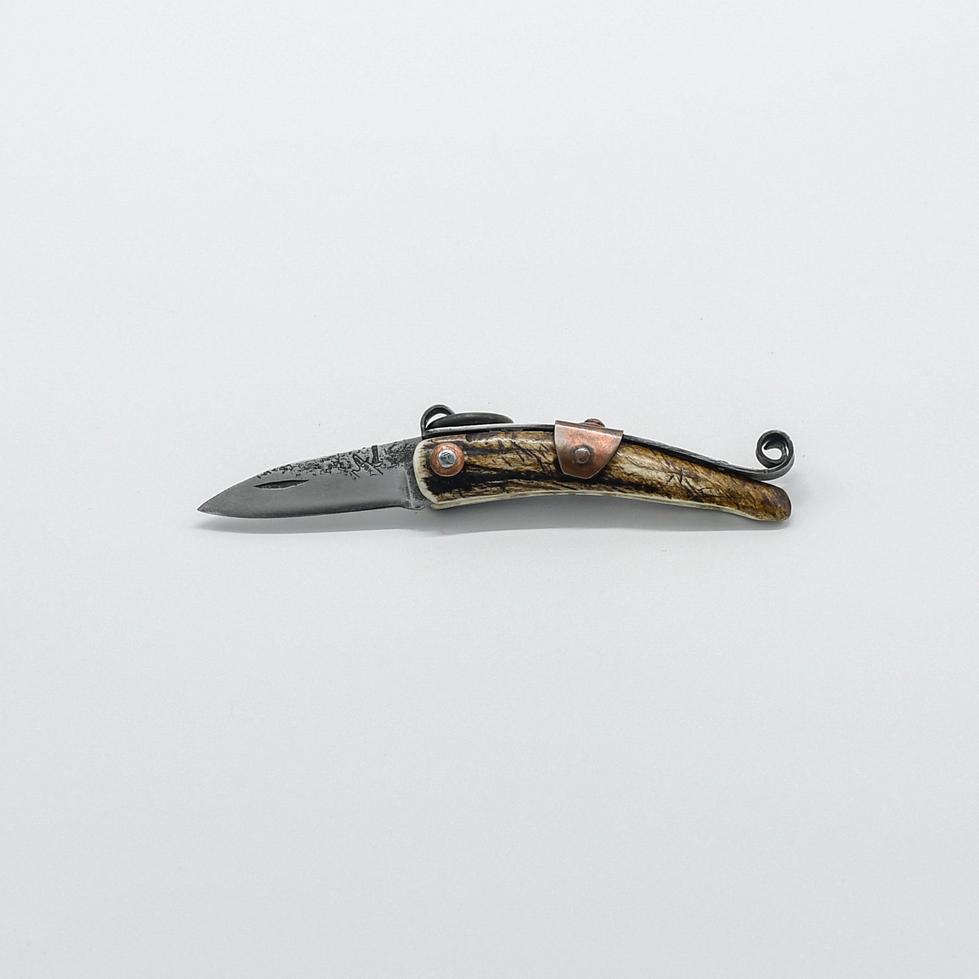 The copper fittings, meticulously shaped and polished, provide a subtle accent that complements the natural beauty of the stag handle. They not only enhance the knife's aesthetic appeal but also contribute to its overall durability and longevity.