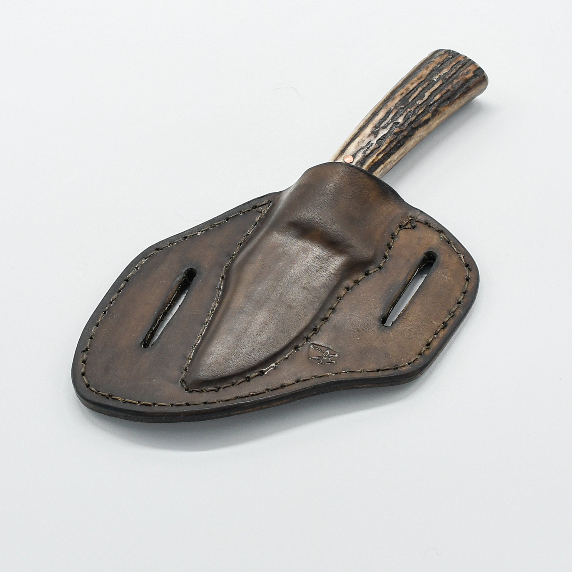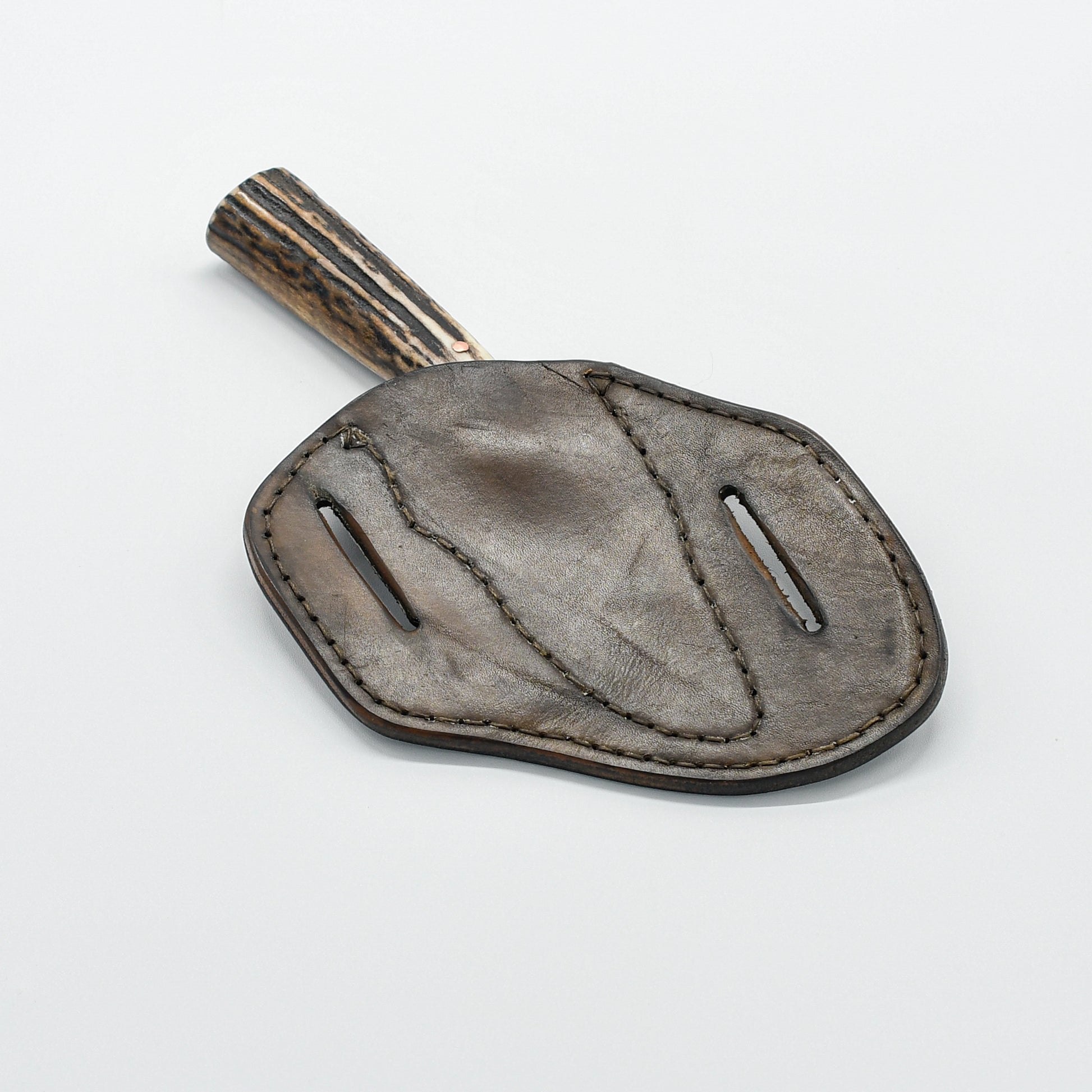 But the true beauty lies in the details. The handle, crafted from genuine stag antler, boasts a natural elegance that can't be replicated. Each antler is unique, with its own texture and character, making your knife a one-of-a-kind treasure. Aluminum spacers and guard provide a subtle contrast to the organic antler, adding a touch of modern refinement.